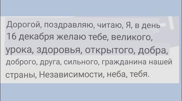 Дорогой, друг , поздравляю тебя с днём рождения.В этот день 16 декабря , я желаю тебя великого здоровья , открытого добра , доброго, сильного, друга. Поздравляю гражданина нашей страны!