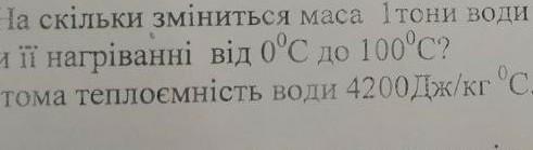 на скільки зміниться маса 1 тони води при її нагріванні від 0 до 100 градусів . Питома теплоємність води 4200 дж/кг