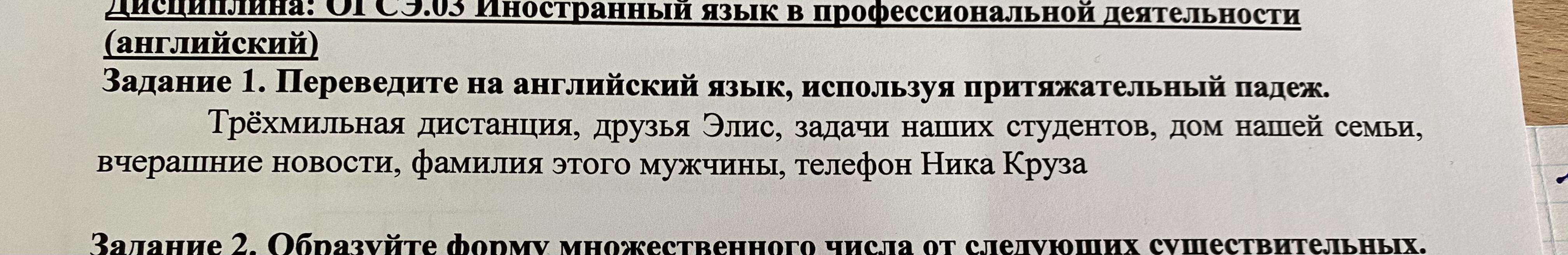 Three's mile distance, Alice's friends, The tasks of our students', the house of our family's, yesterday's news, the surname's of this man, Nick Cruise's phone.