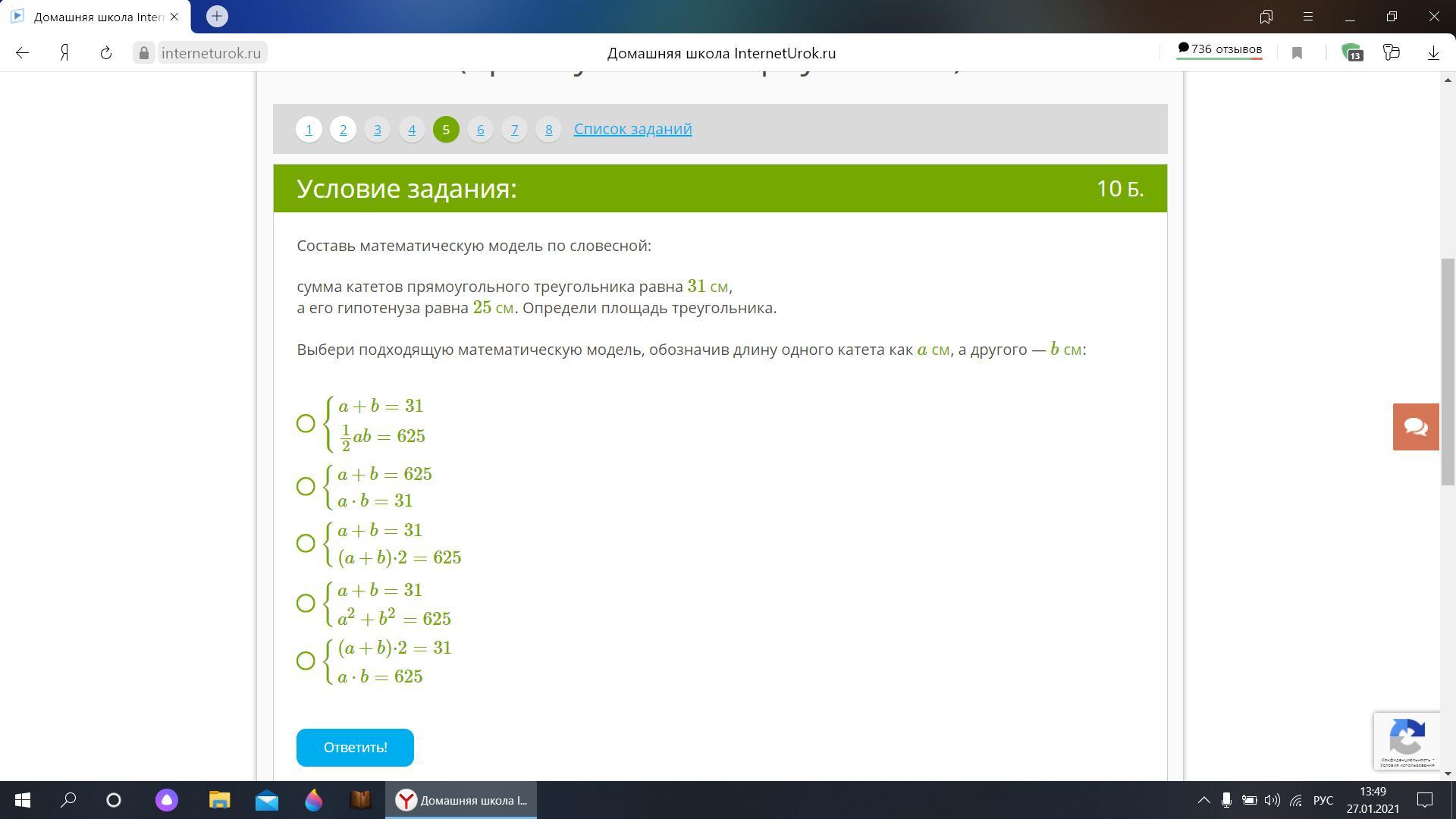 a²+b²=25²; a²+b²=625