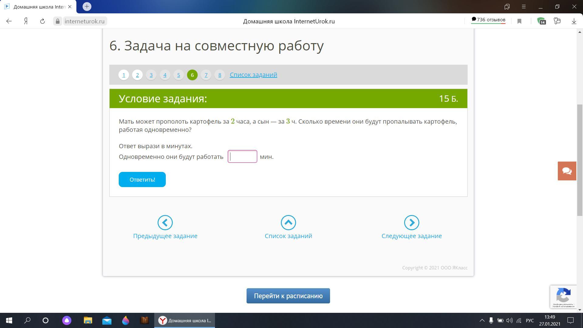 Количество времени они будут пропалывать картофель, работая вместе: