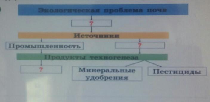 (Онлайн мектеп). Проанализируй содержание схемы "Экологическая проблема почв" Дополни ее. Верных ответов 3