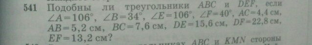 угол A=углу E=106 градуса.угол D=углу B=34 градуса.угол F=углу C=40 градуса.