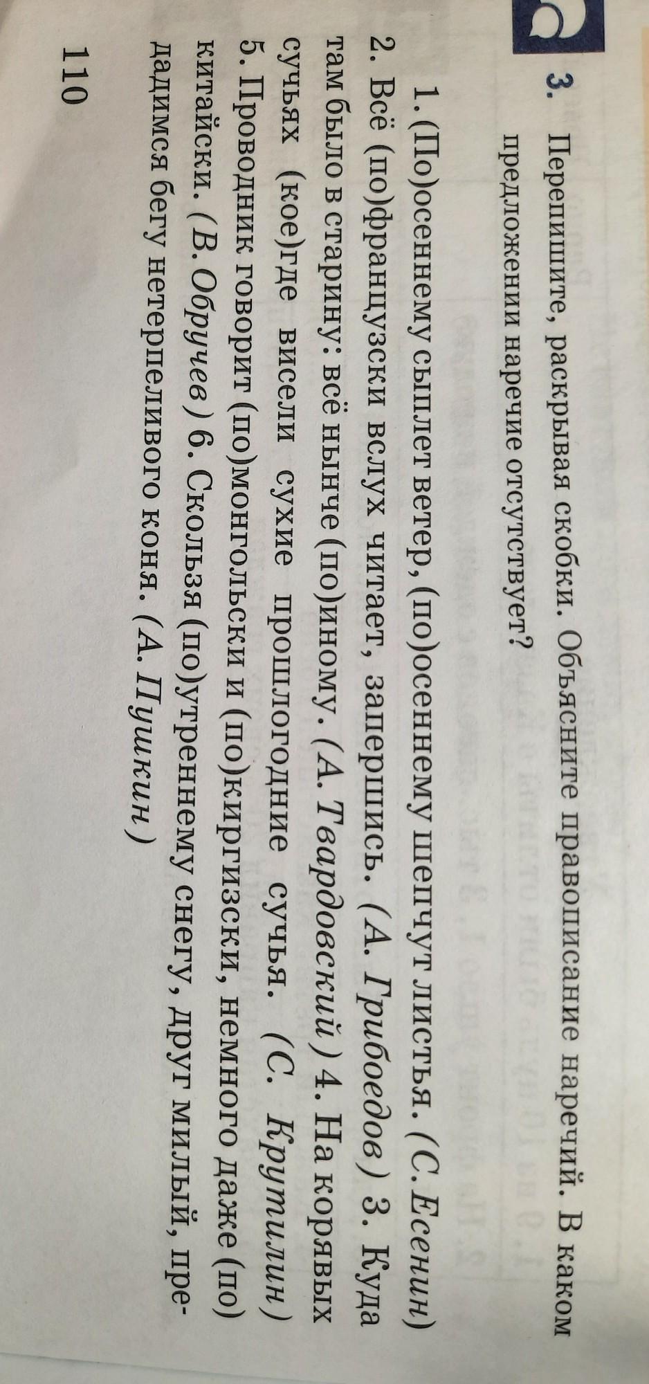 По-осенему сыплет ветер,по-осенему шепчут листья.Все по-французски вслух читает запершись. Куда там было в старину все нынче по- иному. На корявых сучьях кое-где висели сухие прошлогодний сучья. Проводник говорит по-монгольски и по киргизски, немного даже по-китайски. Скользя по утреннему снегу, друг милый, предилимся бегу нетерпеливого коня.