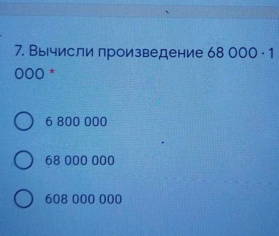 Надо прибавить 3 нуля к 68000, что-бы получить ответ 68000000
