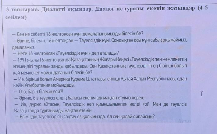 Бұл диалог 16 желтоқсан-Тәуелсіздік күні және қай мемлекет ең бірінші тәуелсіздігін мойындағаны туралы.