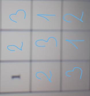 В каждую клетку квадрата, изображённого на рисунке, записывают одну из цифр 1,2 или 3 так, что в каждой строке и в каждом столбце стоит каждая из этих цифр. В левой верхней клетке квадрата записали цифру 1. Сколько разных квадратов можно получить таким образом.