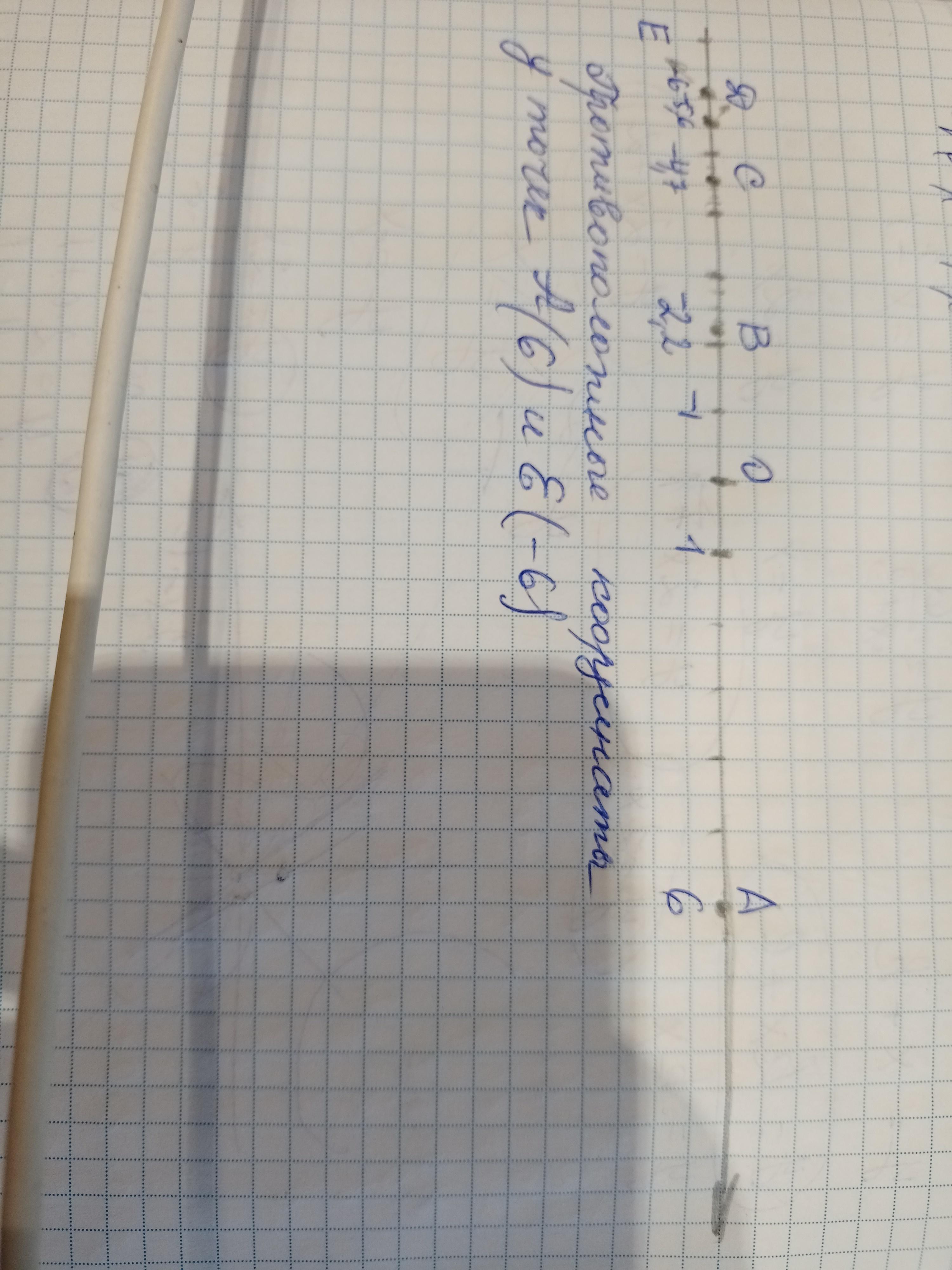 Отметьте на координатной прямой точки А(6); В(-2,2);С(-4,7);D(-5,6);E(-6)