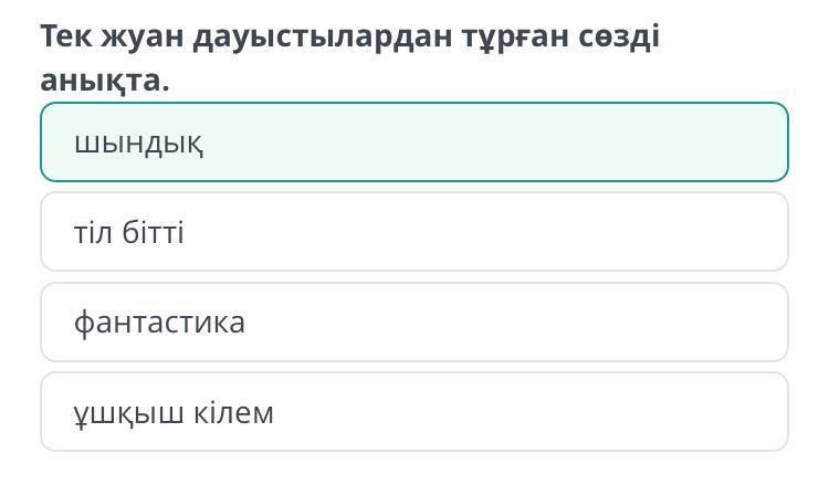 Тек жуан дауыстылардан тұрған сөзді анықта.