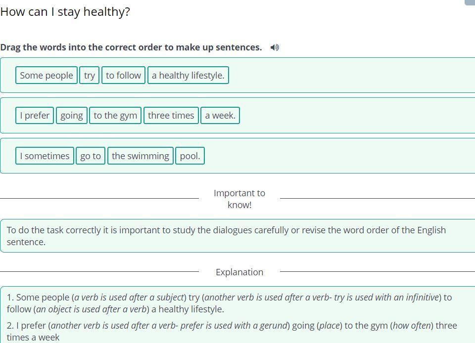 Drag the words into the correct order to make up sentences.