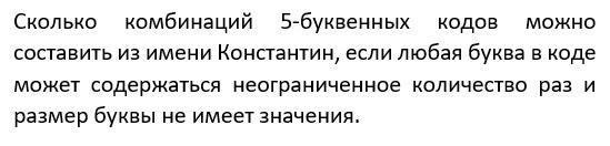 в 5 буквенном коде каждая из семи букв может повторяться неограниченно