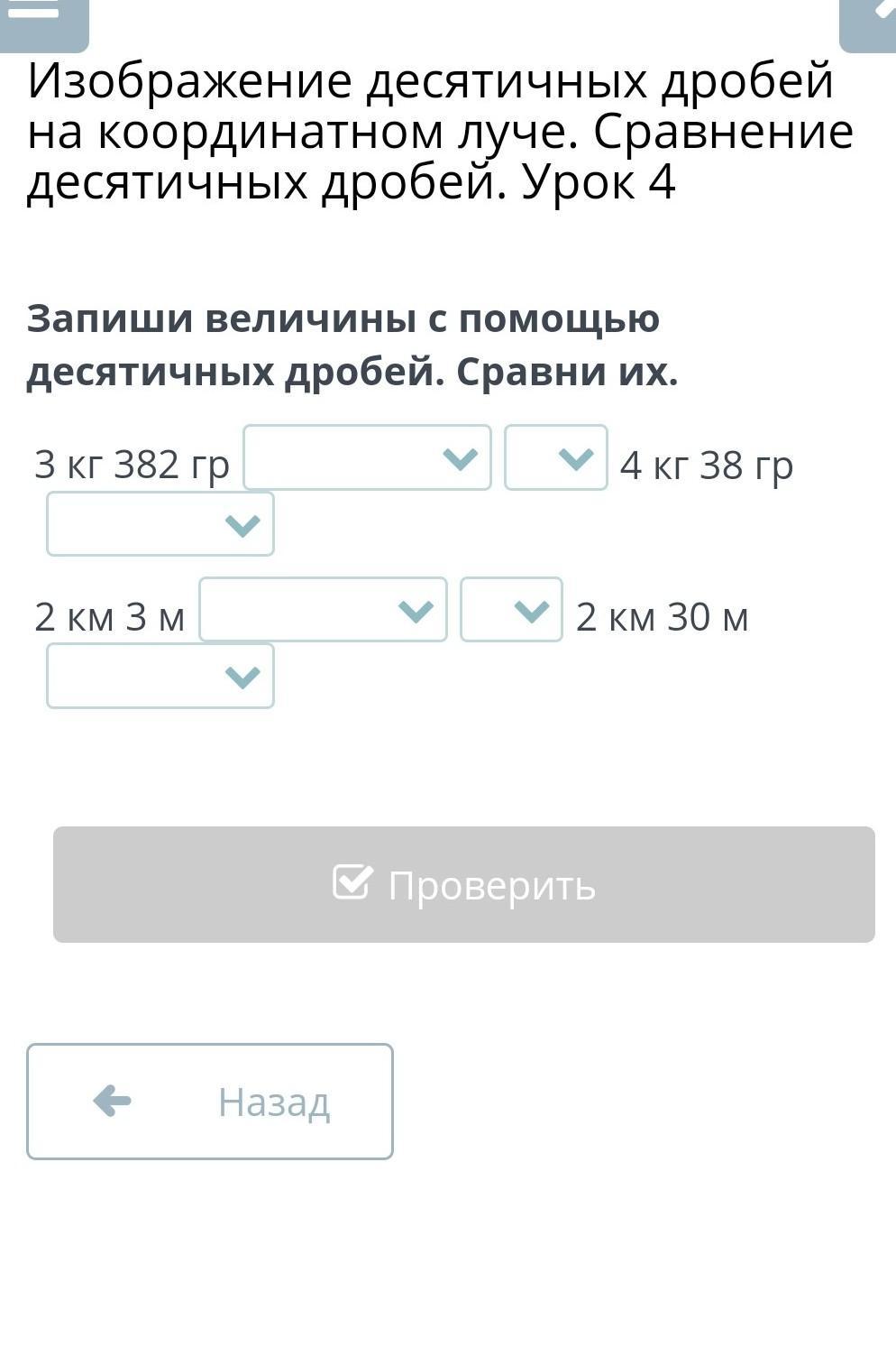 Запиши величины с помощью десятичных дробей. Сравни их.