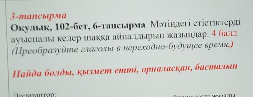 Пайда болды-Пайда болады,Қызмет етті-қызмет етеді, орналасқан-орыналасады,басталып-басталады