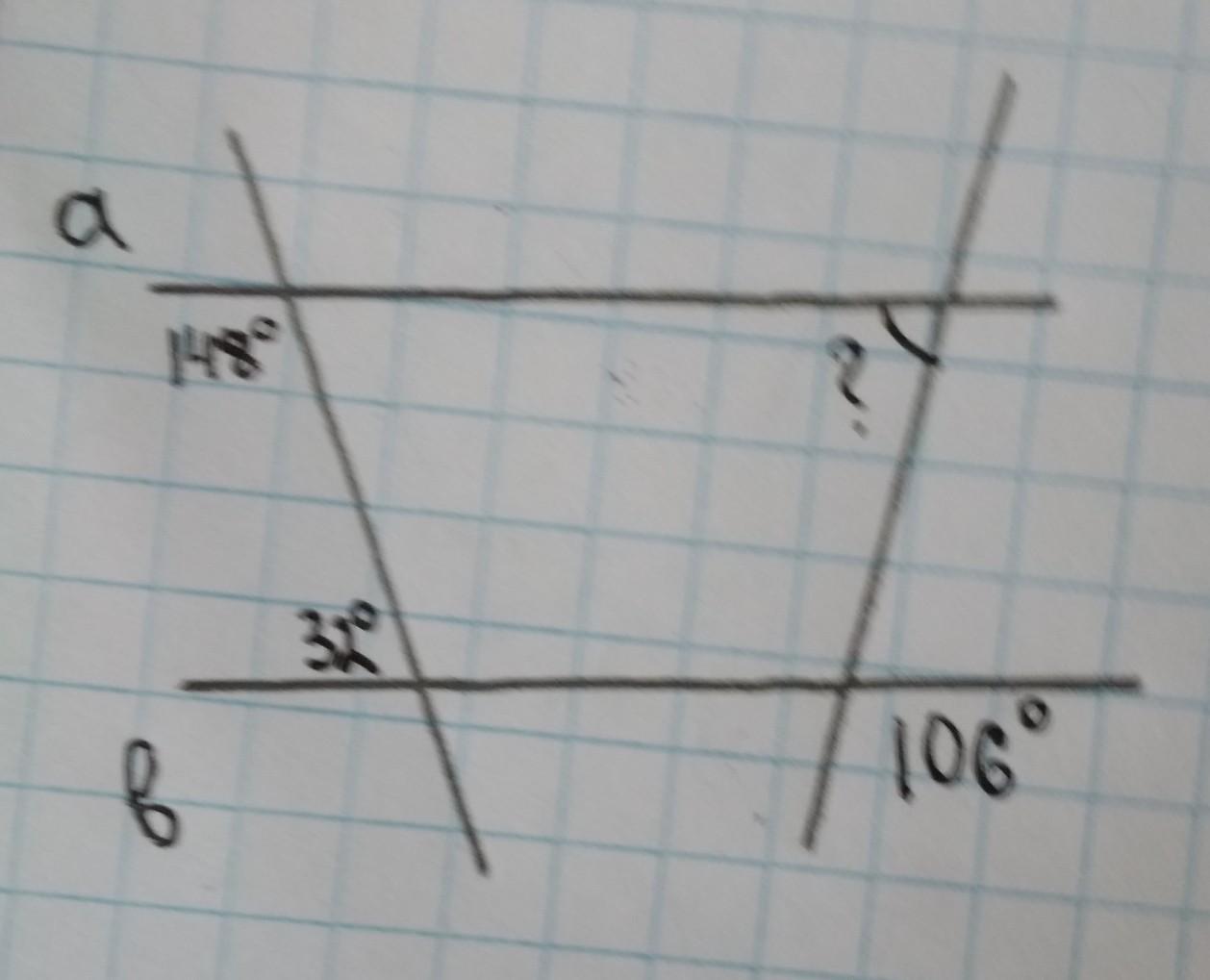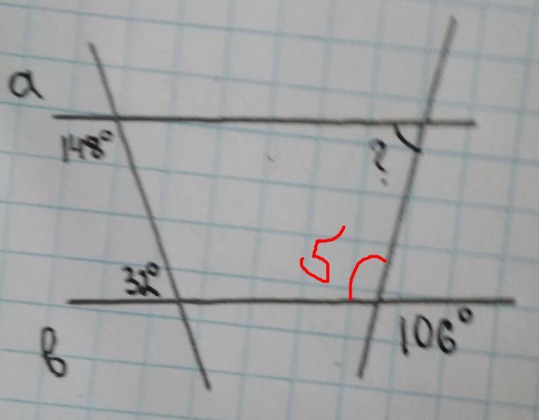 т. к а и b паралельны, то угол 4 ракет 74