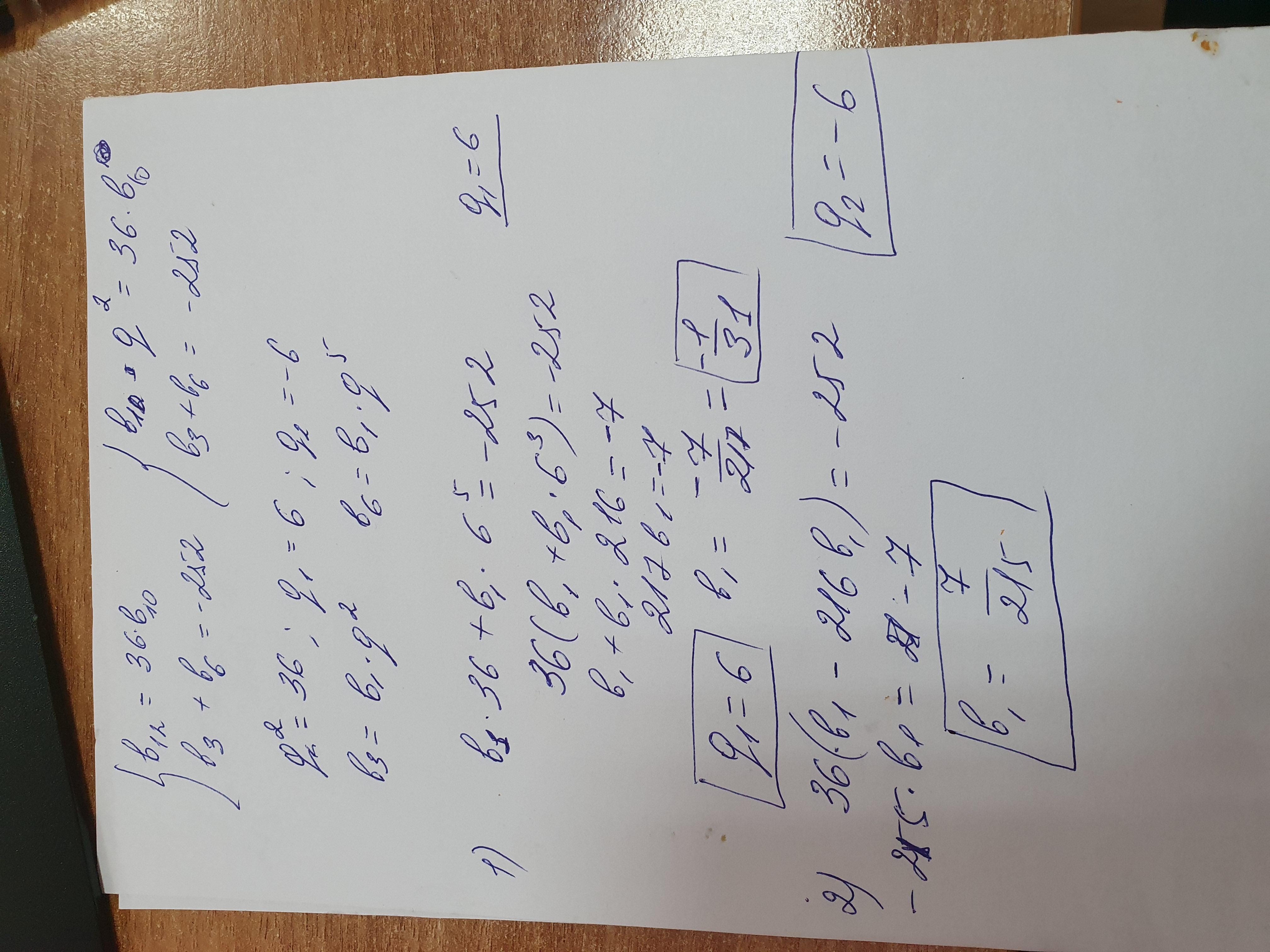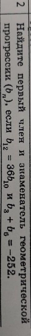 найдите первый член и знаменатель геометрической прогрессии (бn) если b^12=36b^10 и b^3+b^6= - 252