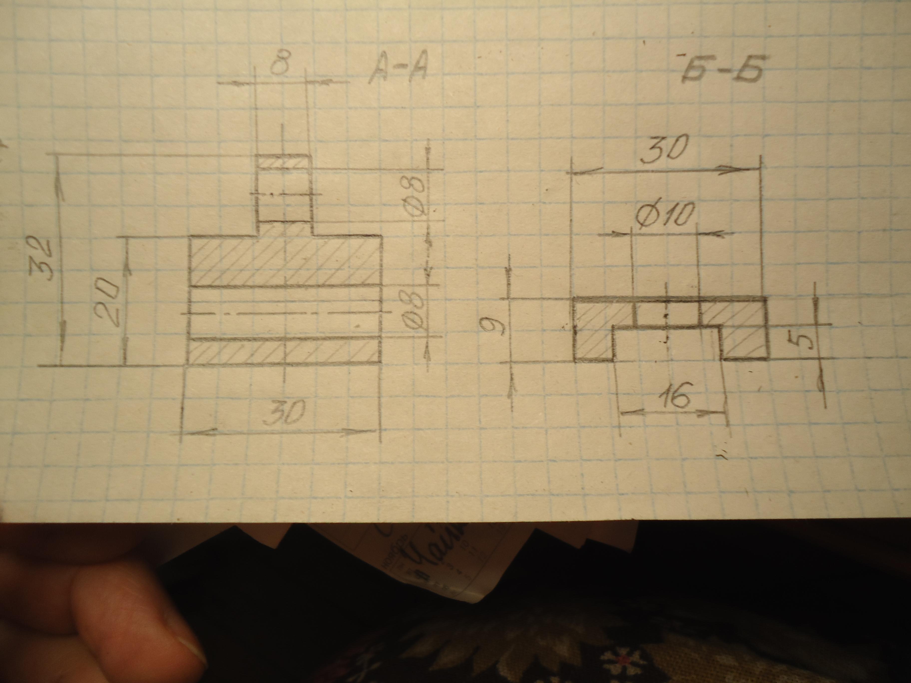 Построение сечений в масштабе 1:1 смотрите на фото.