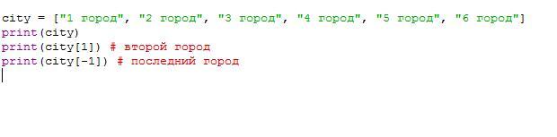 city = ["1 город", "2 город", "3 город", "4 город", "5 город", "6 город"]