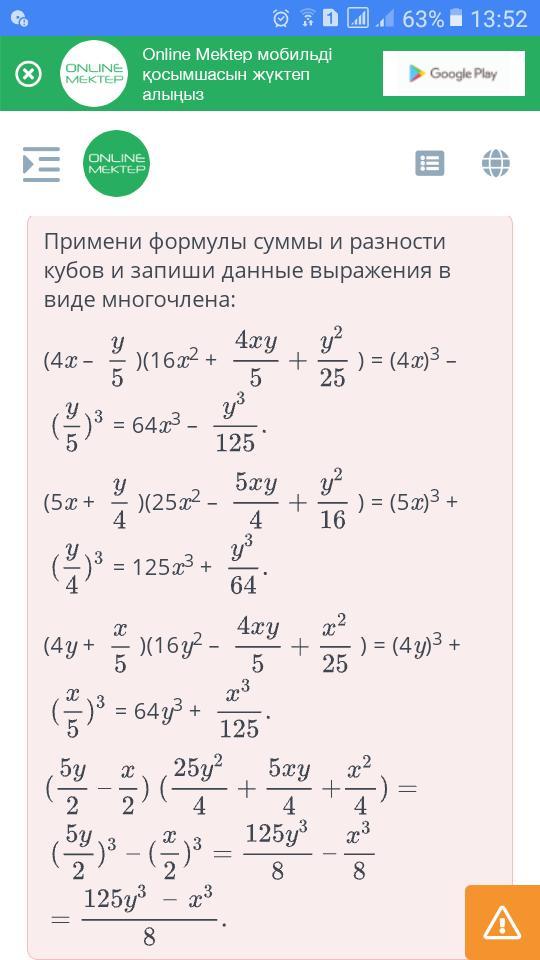 (5у/2-х/2)(25у2/4+5ху/4+х2/4) 125х3+у3/64