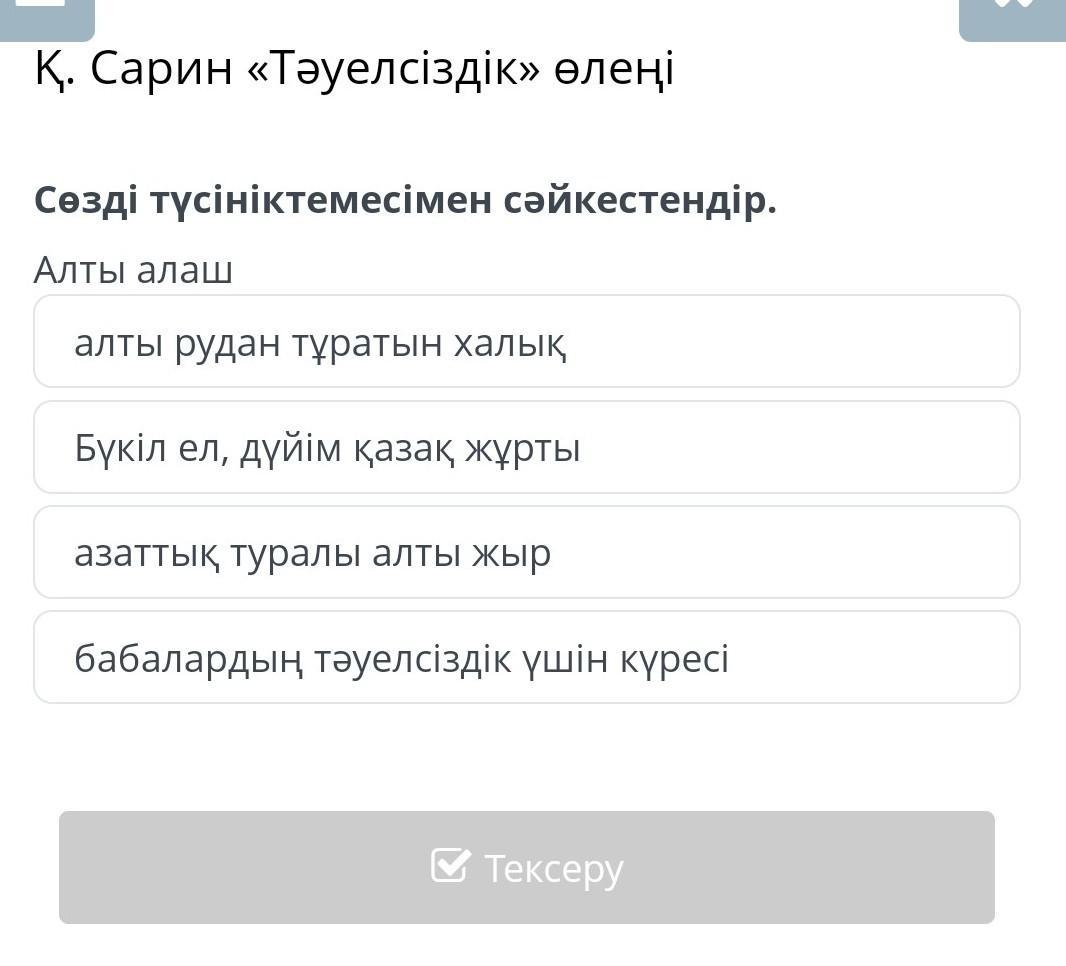 Сөзді түсініктемесімен сәйкестендір.