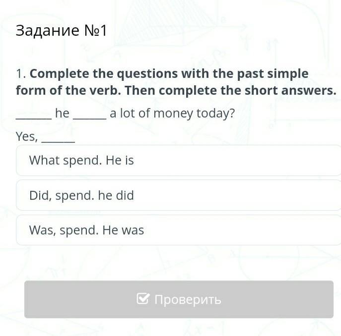 1. Complete the questions with the past simple form of the verb. Then complete the short answers.