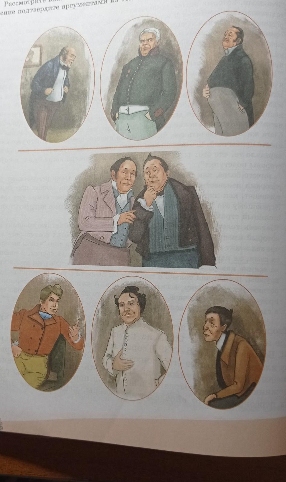 Рассмотрите внимательно иллюстрации и определите персонаж "Ревизора". Свое