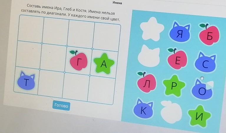 Составь имена Ира, Глеб и Костя. Имена нельзя