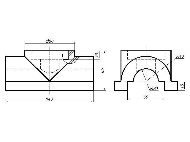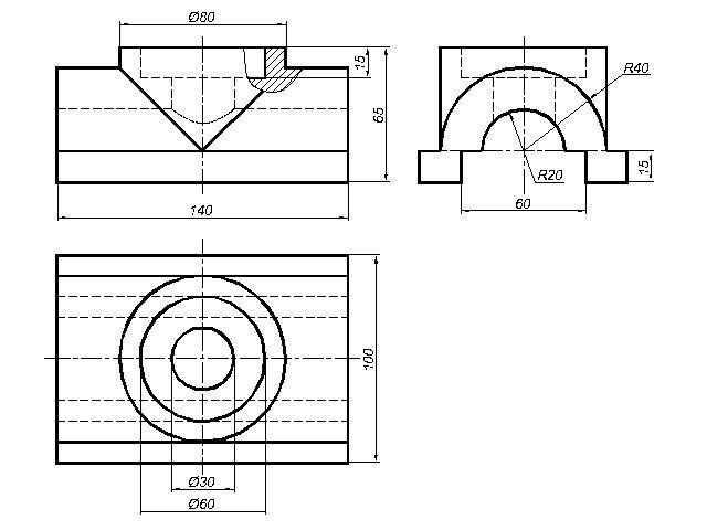 На главном виде сделала местный разрез, т.к. размеры не указывают по невидимым (штриховым) линиям.
