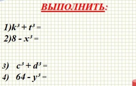 1) k³ + t³ = (k + t)(k² - kt + t²)