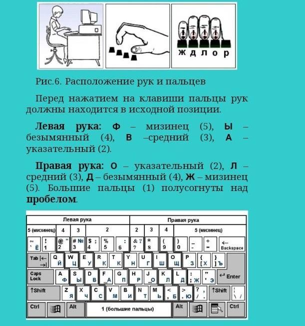 Над клавишей с какой буквой русского алфавита следует располагать указательный палец левой руки при наборе текста на компьютере?
