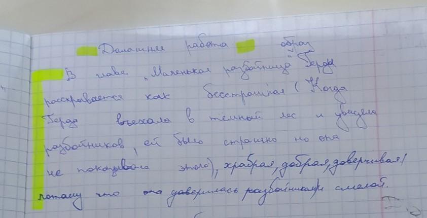 как то так, мы делали про рассказ ,, маленькая разбойница" но ты можешь убрать начало и написать только ее образ