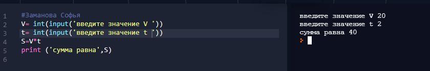 Так же проверьте составленную вами программу на языке Python, после запуска программы вбейте значение v=20 , t=2