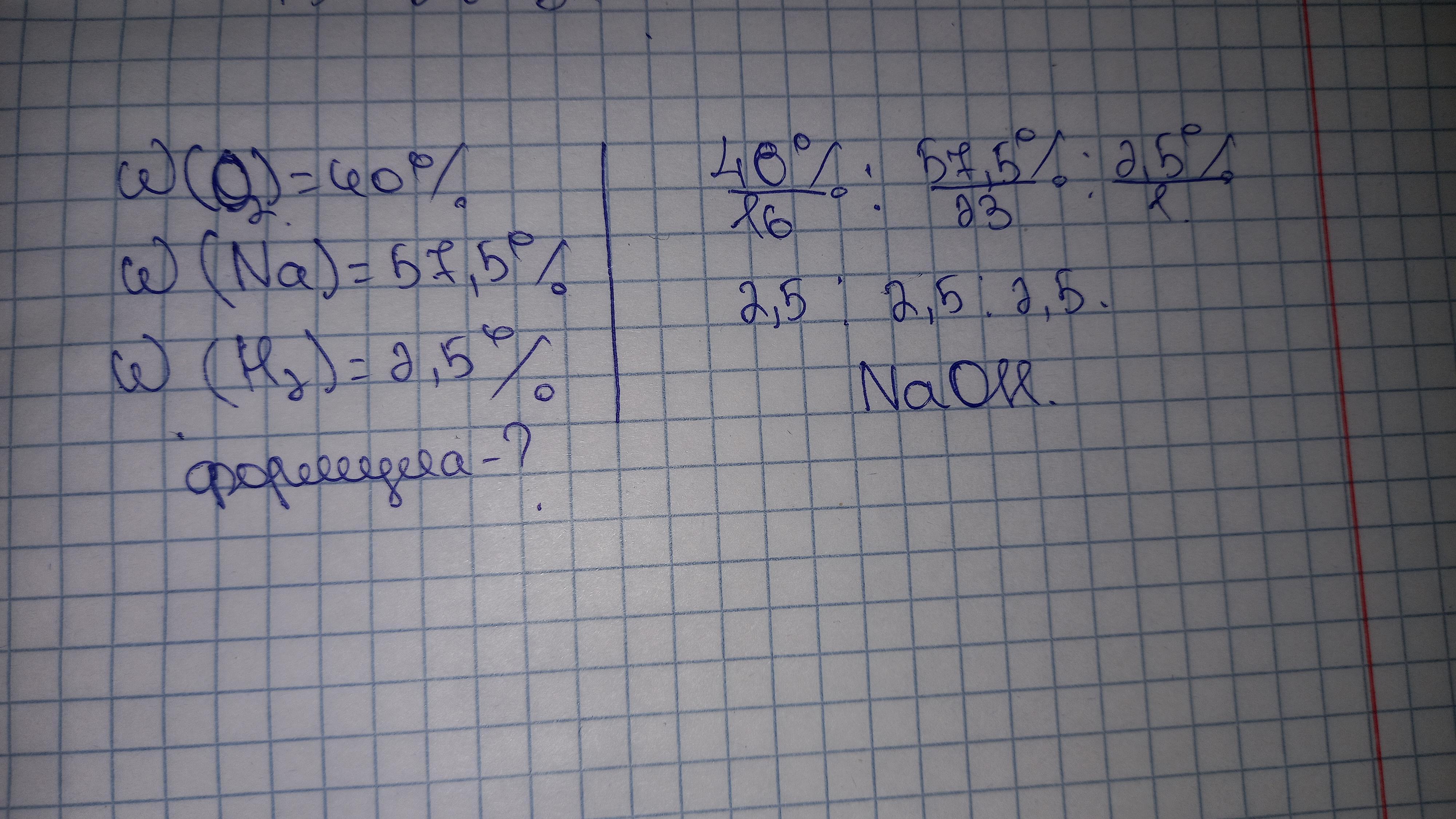 Нужно вывести формулу вещества состоящего на 40% из кислорода , на 57,5% из натрия , а водорода 2,5%