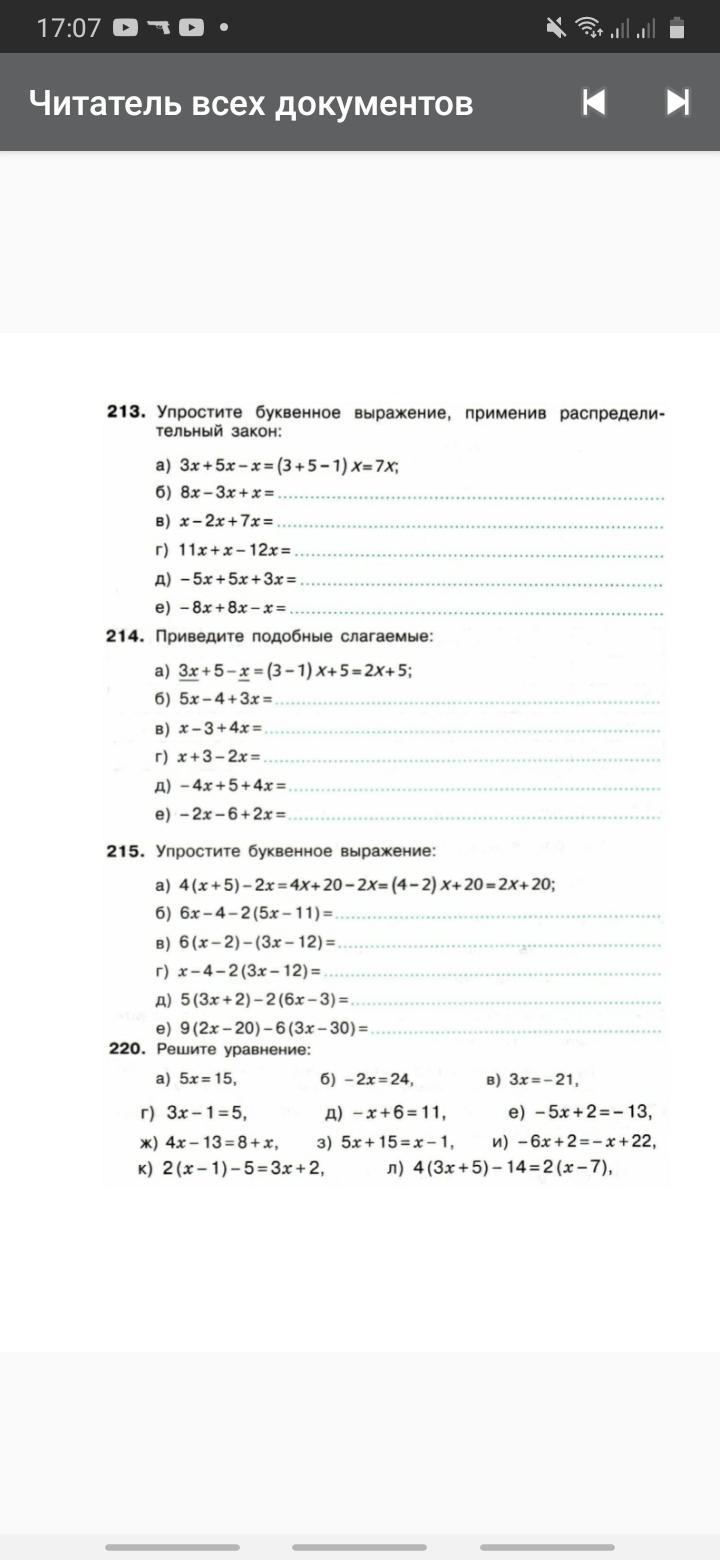 д)-5х+5х+3х=(-5+5+3)х=3х