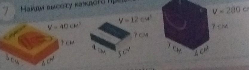 1) h=V/ab=40/5*4=2см,