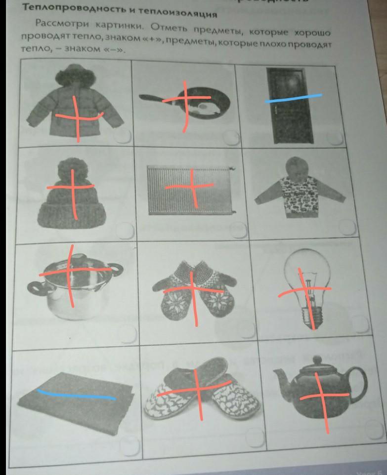 проводят тепло, знаком «+», предметы, которые плохо проводят