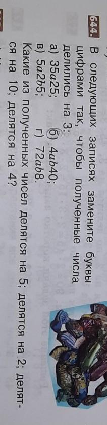 47340 вроде так, так как если сложить получится 18, 18 делится на 3 а если сумма чисел делится то и само число будет делится на 3