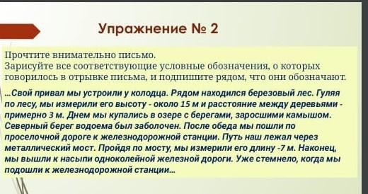 Здесь надо знать как на карте обазначать все слова типо колодец, берёзовый лес и тд, и с боку или снизу нарисовать позначки каждого