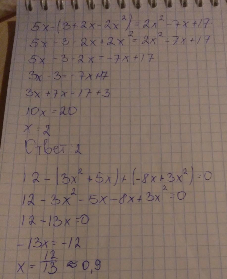5х – (3 + 2х – 2х2) = 2х2 – 7х + 17