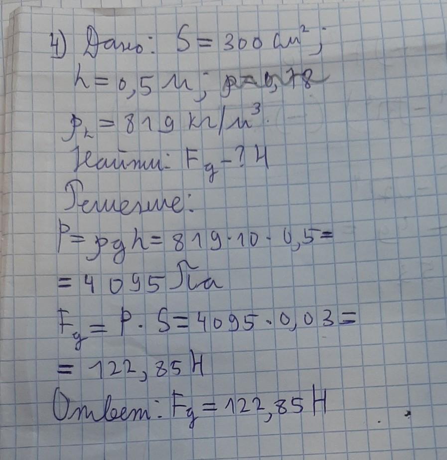 На дне сосуда с керосином лежит дощечка площадью 300 см2. С какой силой на нее давит керосин, если глубина сосуда 0,5 м.