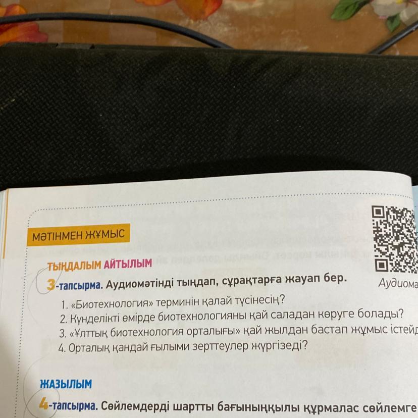 -тапсырма. Аудиомәтінді тыңдап, сұрақтарға жауап бер.