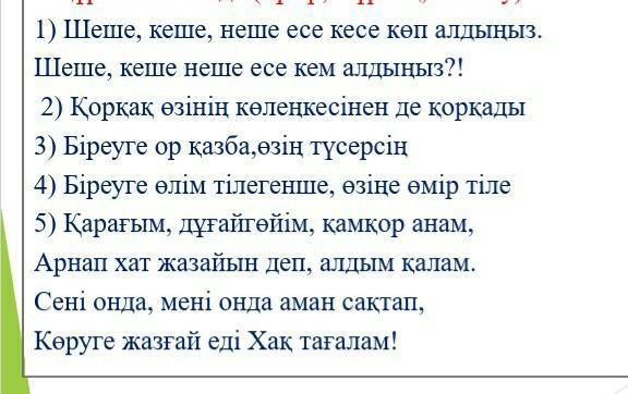Есімдіктер:өзінің,біреуге,өзіңе,сені,онда,