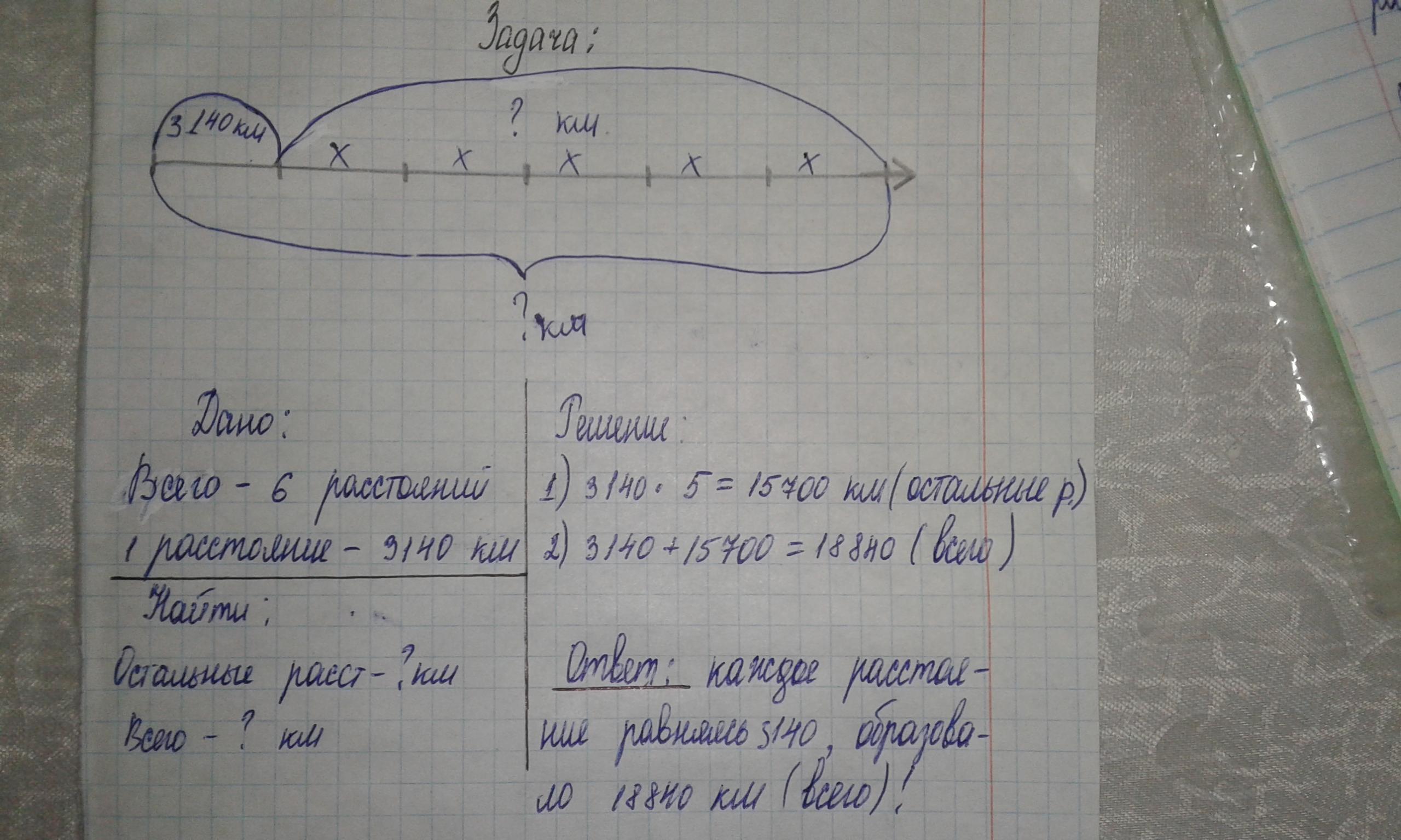 Мотоциклист ехал из пункта А в пункт Б. По дороге, он остановился в пункте С. Известно, что расстояние от пункта А до пункта С равно 3140 км, а расстояние от пункта А до пункта Б = расстояние от А до С большее в 6 раз.