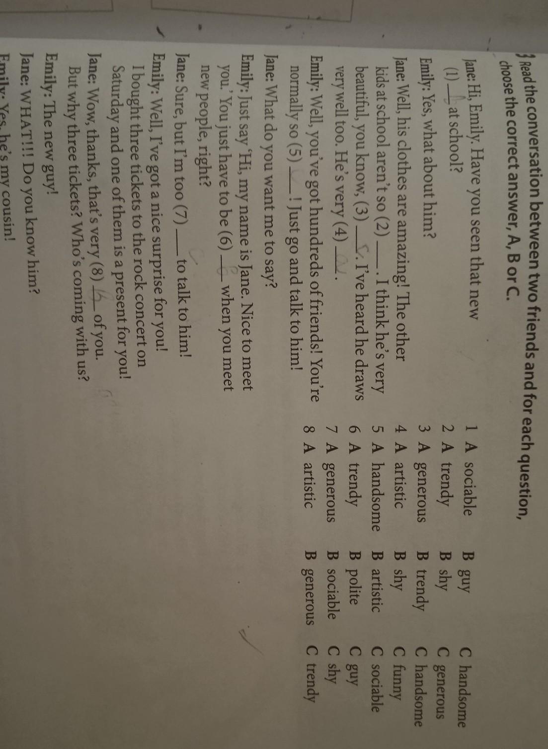Jane: Sure, but I'm too (7) __ to talk to him!