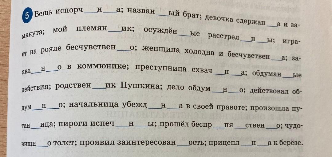 Задание 5 из файла. Списать, обозначить суффиксы, указать прич и прил
