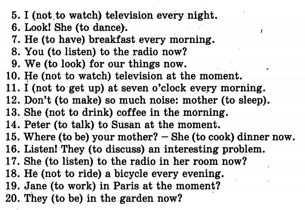 Помогите пожалуйста, раскройте скобки, потребляя глаголы в форме Present Simple или в Present Continuous.