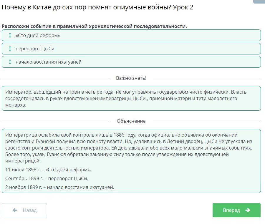 Расположи события в правильной хронологической последовательности.
