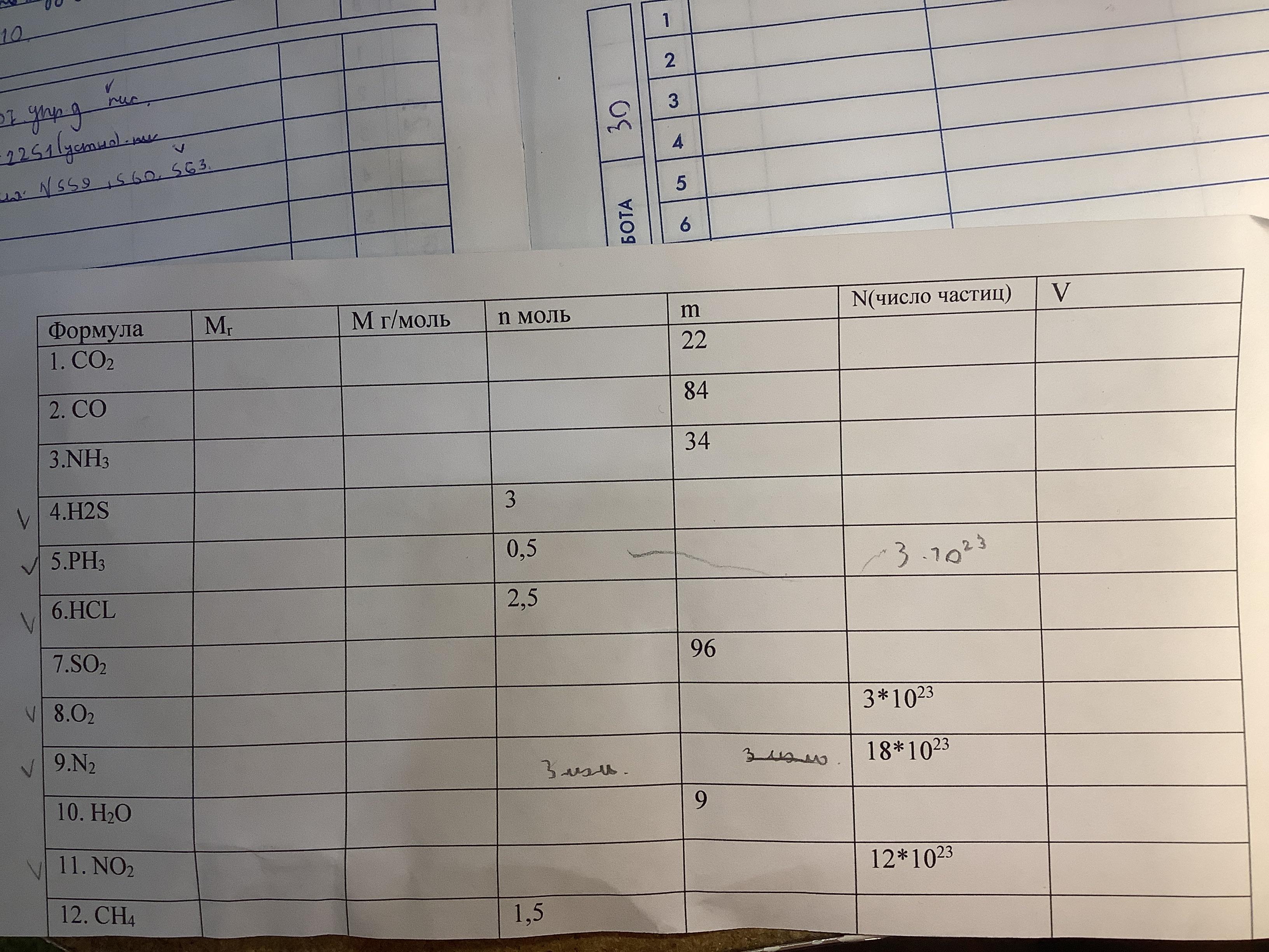 n = N/Na = 3•10²³ / 6•10²³ = 0,5 моль
