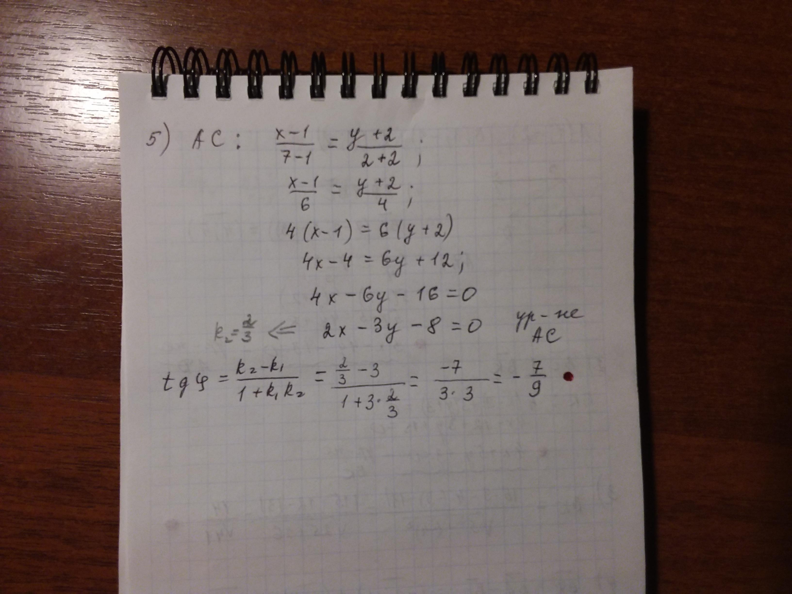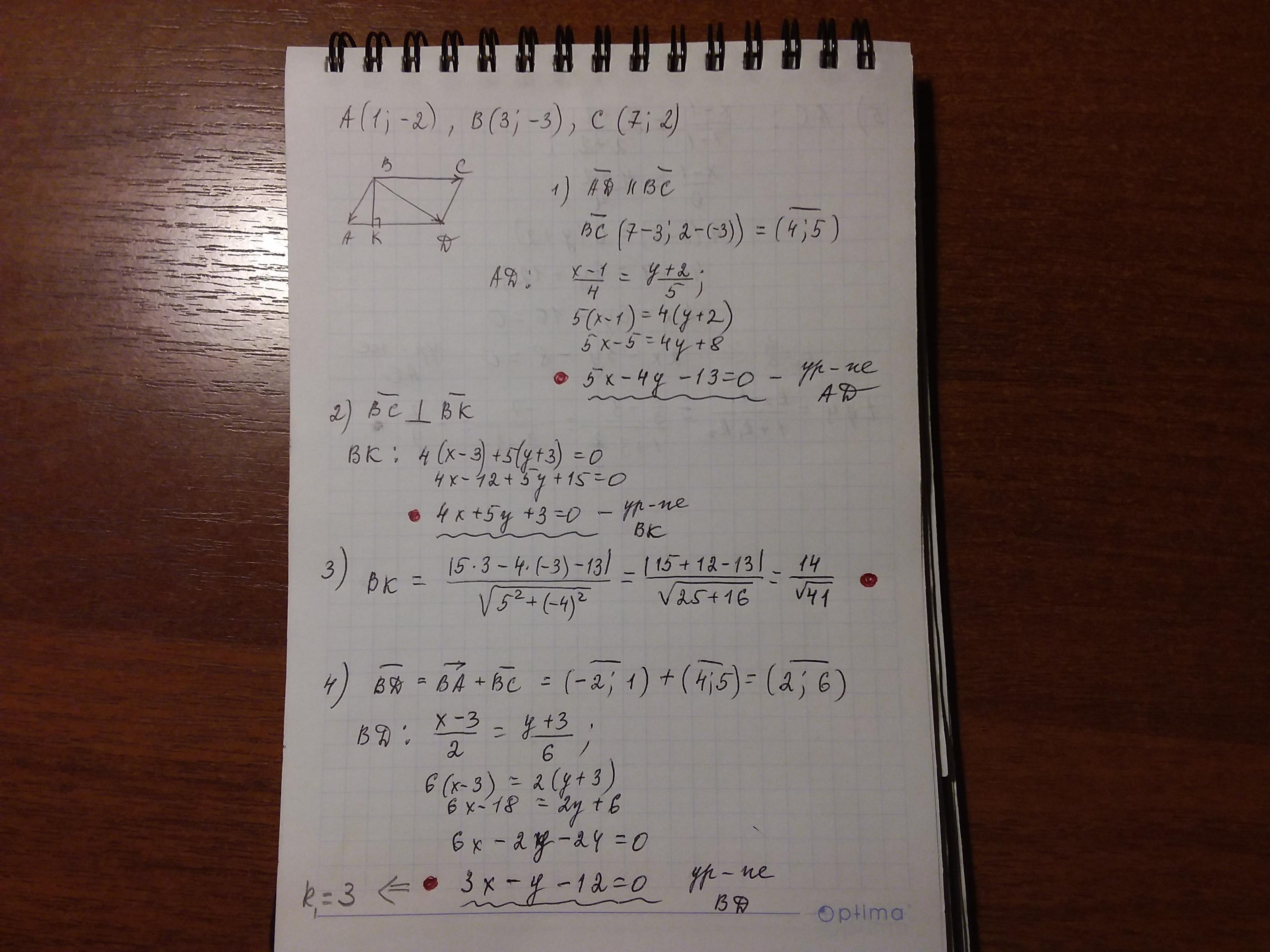 - уравнение высоты ВК, опущенной из вершины В на сторону AD;