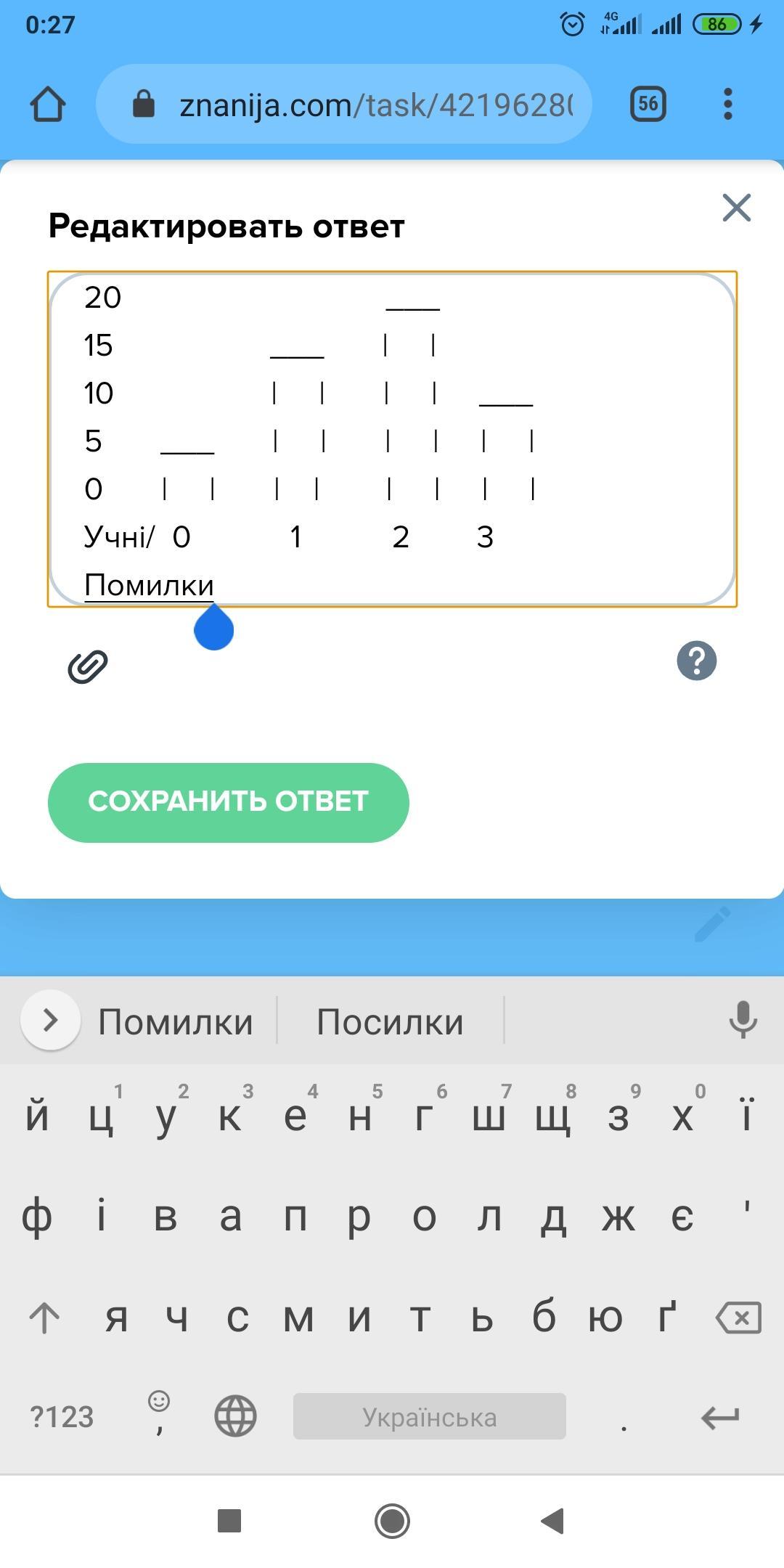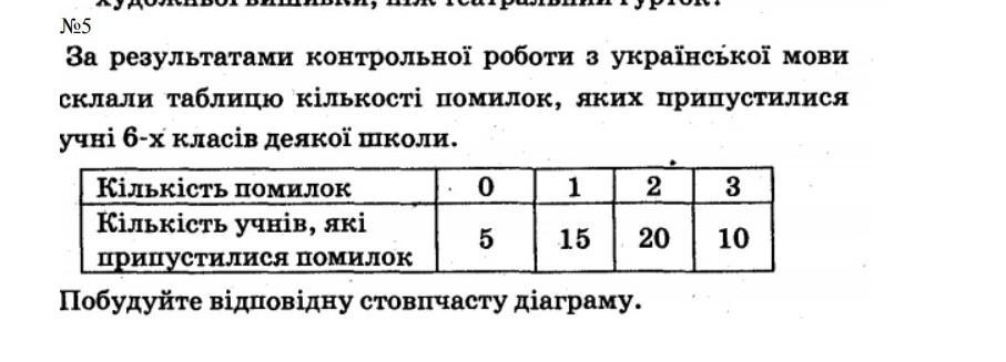 Вертикально позначаємо кількість учнів, ціна позначки 5 учнів, горизонтально позначаємо помилки