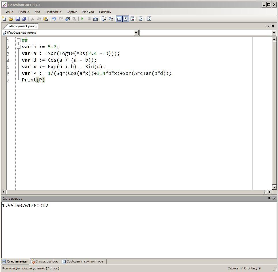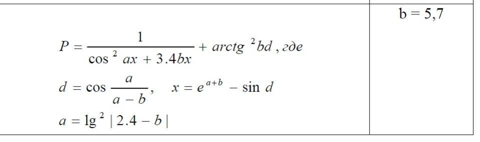 var P := 1/(Sqr(Cos(a*x))+3.4*b*x)+Sqr(ArcTan(b*d));
